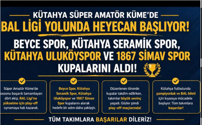Beyce Spor, Kütahya Seramik Spor, Kütahya Uluköyspor ve 1867 Simav Spor, sezon boyunca gösterdikleri başarılı performansın ardından play-off oynamaya hak kazanarak kupalarına kavuştu.Düzenlenen törende takımlara kupaları Kütahya ASKF Başkanı Murat Cengiz , Başkan Yardımcısı Süleyma