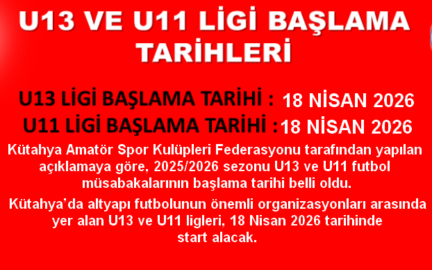Kütahya Amatör Spor Kulüpleri Federasyonu tarafından yapılan açıklamaya göre, 2025/2026 sezonu U13 ve U11 futbol müsabakalarının başlama tarihi belli oldu.